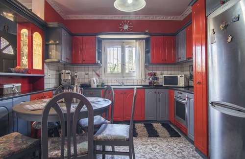 Belle villa moderne privée entourée d'arbres, dans un bel emplacement à quelques kilomètres de la ville de Corfou, à proximité de la vie nocturne de l'île. La maison contient un parking privé, barbecue, chaînes satellite, climatisation dans chaque chambre, écrans plats, wifi et tout ce dont vous aurez besoin pour votre séjour; pots, chauffe-eau à lisseur. Nous offrons à nos clients de l'eau minérale, des fruits frais, des produits de santé et le transport vers et depuis l'aéroport à proximité sans frais supplémentaires.