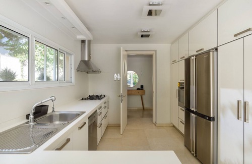 This gorgeous villa is located in a quiet neighborhood near the Bursa (stock exchange) and the Park Hayarkon. You will feel cozy and relaxed just like at home while enjoying a garden, a spacious patio and your own private swimming pool.