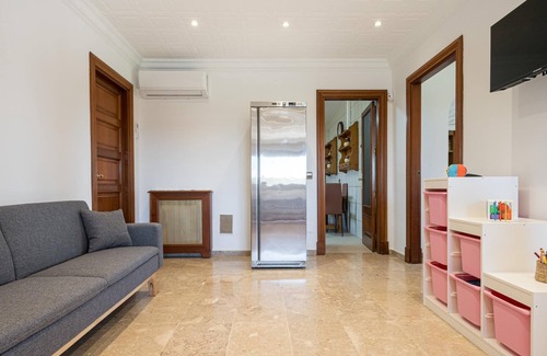 Une cheminée et la climatisation équipent également cette location avec 5 chambres et 4 salles de bain. Parmi les équipements de salle de bains, vous trouverez un sèche-cheveux, un bidet et des serviettes. Préparez un bon petit plat maison dans la cuisine équipée de tout le nécessaire : un four, un réfrigérateur et un lave-vaisselle, mais aussi une cafetière, un micro-ondes et des ustensiles de cuisine. Et puisque vous aurez accès à une laverie, inutile d'encombrer vos bagages.