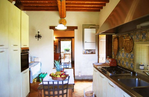 The restoration personally followed by my father is the result of a careful research on materials and furnishings that has seen respect for the canons and charm of the ancient Tuscan farmhouses. The 5000 m2 fenced property includes olive trees, oaks, large lawns and a large swimming pool, open from May to September. The house is split over 2 floors. On the ground floor there are a nice lounge (with sofas, satellite TV, wi-fi internet connection), a fully equipped separate kitchen with dining area, direct access to the garden and a large bathroom. Upstairs there are 4 bedrooms with beamed ceilings and ancient terracotta floors.
