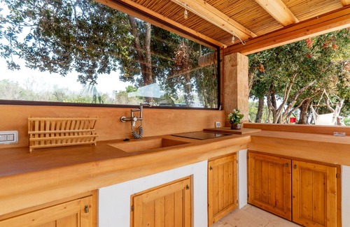 This vacation rental boasts a private outdoor oasis complete with a pool, garden, open and covered terraces, barbecue, outdoor shower.