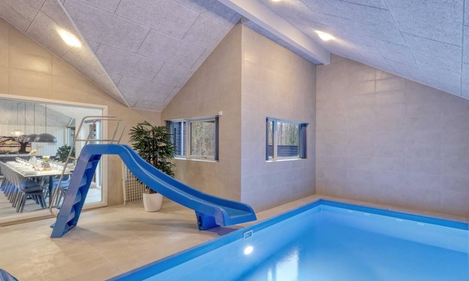 Welcome to a dynamic vacation home just a stone\'s throw away from the Tramser See. From the outset, you\'ll be enveloped in nature\'s embrace and tranquility. This contemporary pool house caters to all tastes, accommodating up to 16 guests across six stylishly furnished bedrooms and two snug loft areas, perfect for kids and teens. There\'s ample space for family, friends, or colleagues to enjoy a comfortable holiday together. The heart of the home is the open-plan kitchen and living area, providing plenty of space for socializing, whether you\'re cooking in the modern kitchen or relaxing around the dining table. After dinner, unwind in the cozy sofa area. For endless entertainment, head to the spacious activity room, where you can indulge in billiards, table football, darts, and table tennis. Spectators can enjoy drinks from the house bar while cheering on players. The excitement continues in the pool area, featuring a private pool and water slide, promising hours of fun for all ages. To unwind, retreat to the expansive terrace for a tranquil experience. Relax in the outdoor whirlpool and sauna, then refresh under the outdoor shower, basking in the open sky. The terrace also offers a barbecue and garden furniture for al fresco dining. Younger guests can enjoy the swings, trampoline, and play tower, ensuring everyone has a memorable stay filled with fun and relaxation.\r\n\r\n\r\n\r\n\r\n\r\n