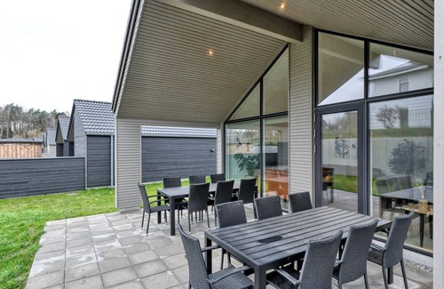This modern pool house, accommodating 14 people, is situated near the Trams lake in Germany, just 50 meters from the shore. The location offers ample opportunities for hiking and relaxing by the water, making it an ideal spot for a tranquil VillaVilla holiday. The house features an impressive open-plan kitchen and living area with a well-appointed kitchen, a large dining table, and a cozy sofa area, perfect for family and friends to gather and enjoy meals together. For active guests, the house offers an activity room equipped with billiards, table tennis, and darts, providing plenty of entertainment and friendly competition. Additionally, there is a private pool area with a water slide for invigorating swims. Outdoors, guests can enjoy a wellness area with an outdoor whirlpool and sauna, ideal for relaxation after a busy day. The large terrace includes a barbecue, perfect for outdoor dining as the sun sets. Families with children will appreciate the swings, trampoline, and play tower for fun outdoor activities. The house has five bedrooms divided into two sleeping areas, with additional beds in two lofts, which are popular with kids and teens.