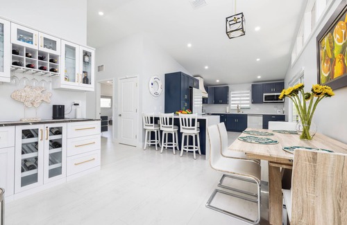 Forget your worries in this spacious and serene space. A private canal-front escape in Key Largo where modern comfort blends with relaxed island living. Just minutes from the bay, this bright 3-bedroom 5 beds, 2.5-bath retreat is perfect for families, couples, and boating lovers seeking the true Florida Keys experience. Shaded ground-level are with a pool, outdoor kitchen w/ TV, dining table, loungers just steps from your private dock. Perfect for entertaining/unwinding after sun-filled days. Island Vibes, Game Nights & Waterfront Bliss. Your Perfect Key Largo Escape! Welcome to your ultimate Key Largo getaway! This spacious two-story home offers the perfect blend of laid-back island living and entertainment-packed luxury. Featuring 3 beautifully appointed bedrooms and 2.5 bathrooms, it’s ideal for families, or anyone looking to relax, recharge, and make unforgettable memories. Upstairs, enjoy a covered terrace perfect for outdoor dining and sunset lounging. Gather around the large dining table, unwind in the cozy seating area, or sway your stress away in the hammock with a cold drink in hand. Now for the fun part, the downstairs! Challenge your crew to a game of pool or ping pong, or kick back in the entertainment area for a chill day indoors. Step outside to your ground-floor covered terrace, where you'll find a stylish lounge area, a third dining table, and an epic outdoor kitchen with a grill and a wood-burning oven, perfect for pizza nights or sizzling up the catch of the day. Ready to cool off? Dive into the 40-foot long pool or soak in the jacuzzi, turn on the jets for a soothing massage or crank up the heat to melt the day away. Boaters, you're in luck! Tie up at the private 80-foot dock, fish right off the edge, or hop on your boat and be at the iconic Playa Largo in just minutes. This home is all about fun, comfort, and making every moment count, whether you're grilling poolside, lounging in a hammock, or heading out on the water. The home sits on a spacious 12,000+ sq ft lot, providing ample room for car parking and all your water toys.