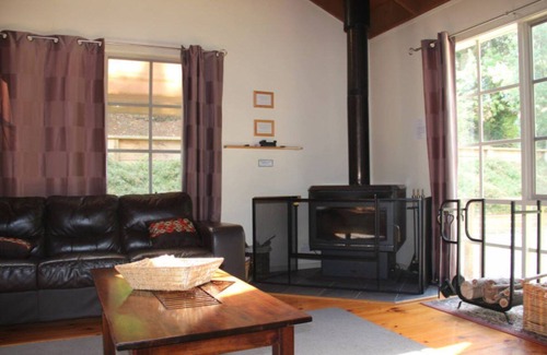 Wattletree Cottage is lovely spacious cottage that has 5 bedrooms and can sleep up to 12 people and sometimes more. The house has cathedral ceilings and large windows to maximize the views to a number of mountains. The large open plan main area has plenty of light and a fire place for those cold nights. In summer enjoy the evap cooling the main room offers that filters through the rest of the house. There is a dining room table that can seat 12 and a fully stocked kitchen so no need to bring any utensils, pots or pans! The bedrooms are spacious and the large family bedroom has a second t.v/dvd and many toys to make it a kid friendly bedroom. All bedrooms have heaters and ceiling fans. House has a C.D, DVD, video and stereo. There are two bathrooms, including a bath and large wheelchair accessible bathroom for those whom may have mobility issues. Baby provisions such as porta cot and high chair are provided. There is a large rear balcony with B.B.Q facilities and a great enclosed play ground wit a slide and cubby house. Watch your children play whilst you enjoy a cuppa on the back verandah!