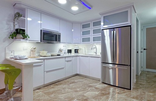 Cette location avec 4 chambres et 2 salles de bain compte également un salon, un coin salle à manger, la climatisation et un bureau. Parmi les équipements de salle de bains, vous trouverez un sèche-cheveux, des serviettes et du papier toilette. Dans la cuisine, vous trouverez une plaque de cuisson et un réfrigérateur, mais aussi une cafetière, un micro-ondes et des ustensiles de cuisine. Et vous pourrez même voyager un peu plus léger, car le logement est équipé d'une machine à laver et d'un sèche-linge.