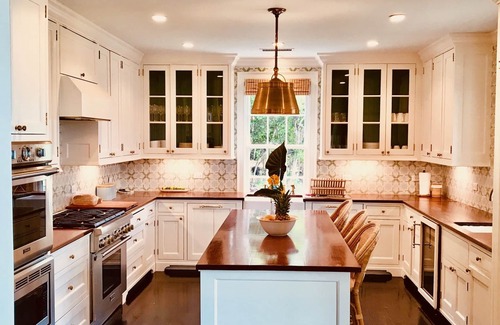 Off la grande salle est une véranda surdimensionnée avec bar extérieur, refroidisseur à vin et évier. Descendez les marches jusqu'à la vaste pelouse, les chaises longues en teck et la piscine. Le maître en bas connu sous le nom de «The Imperial Room» offre un lit king-size à 4 montants, un plateau de plafond, une commode antique et une salle de bain attenante et est décoré sur le thème de l'époque coloniale britannique. L'autre chambre au rez-de-chaussée connue sous le nom de «The Bahama Room» propose un ensemble de lits jumeaux, un plateau-plafond, un placard surdimensionné et une salle de bains privative. Elle est décorée d'imprimés et de motifs colorés des Bahamas.