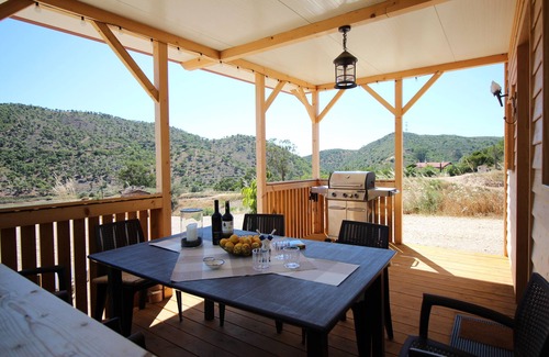 Wooden house on a lake with beach & playground (opt. rental car) | Maison dans S.B. Messines Pedreiras Algarve