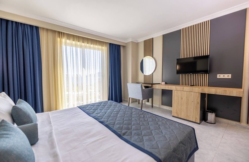 Yasmin Bodrum Resort - All Inclusive possède 460 chambres comprenant la climatisation, des minibars et un coffre-fort. Les chambres donnent sur un balcon. Une télévision LCD donne accès aux chaînes par satellite. Les salles de bain comprennent un ensemble douche/baignoire, des articles de toilette gratuits et un sèche-cheveux. Un service de ménage est fourni tous les jours.