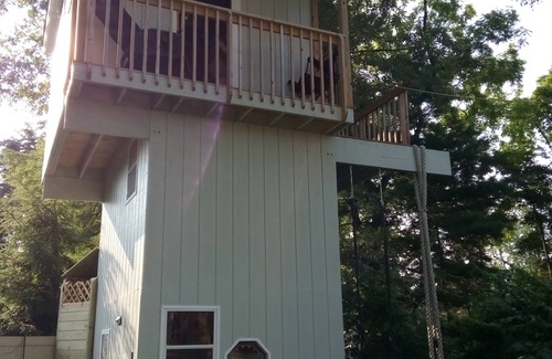 Maison d'arbre flambant neuve avec douche privée toute neuve et aventures incroyables à la tyrolienne et options de murs de pierres. Le vrai séjour aussi excitant et humble qu'un enfant, la vraie affaire.